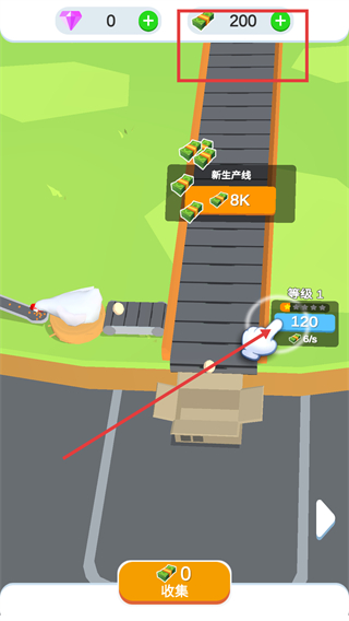 4、通过持续收集财富(如200),不断升级生产线和养殖更多鸡只,扩大养鸡场的经营规模,获取更高的收益和游戏等级。