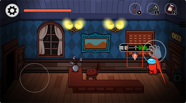 2、在002房间中,根据提示寻找钥匙,利用场景中的道具破解门锁,推进密室逃脱的进度。