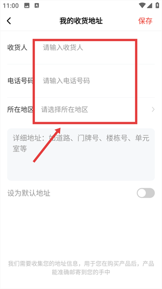 3、点击“添加收货地址”按钮,进入地址信息填写表单页面。