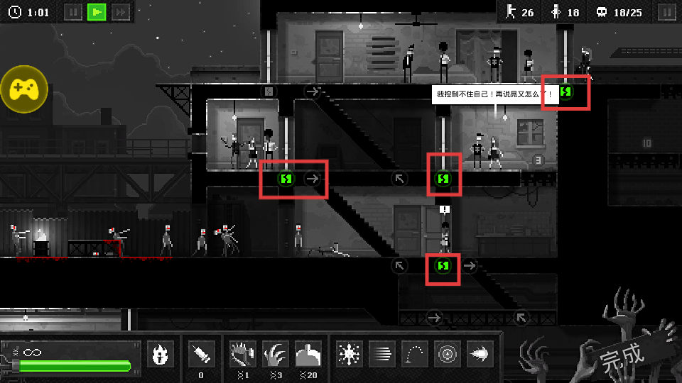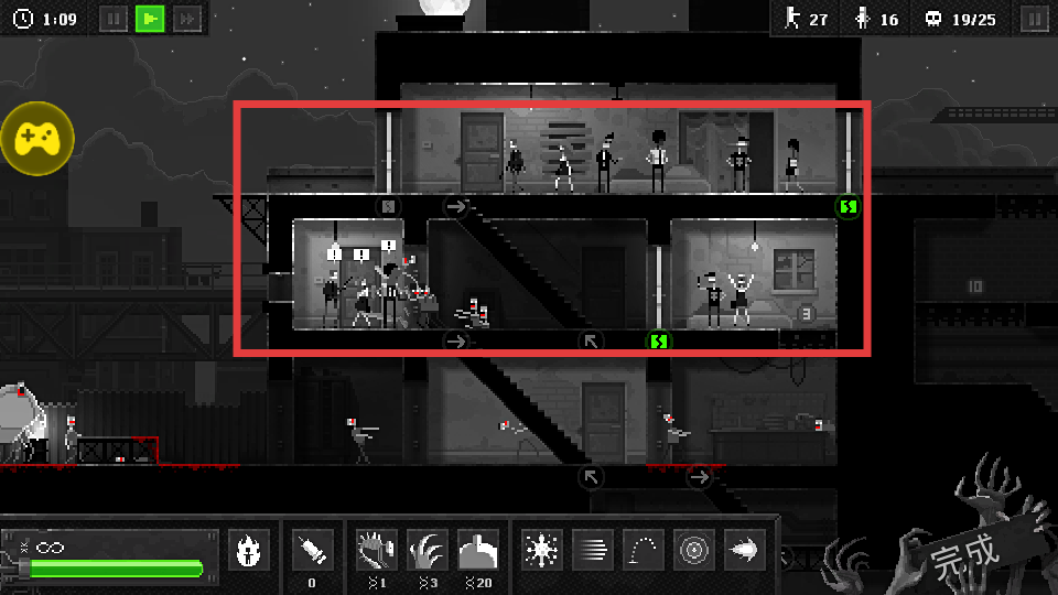 3、观察红色方框内的人类分布,合理规划感染路径,高效击杀人类,提升杀人数量。