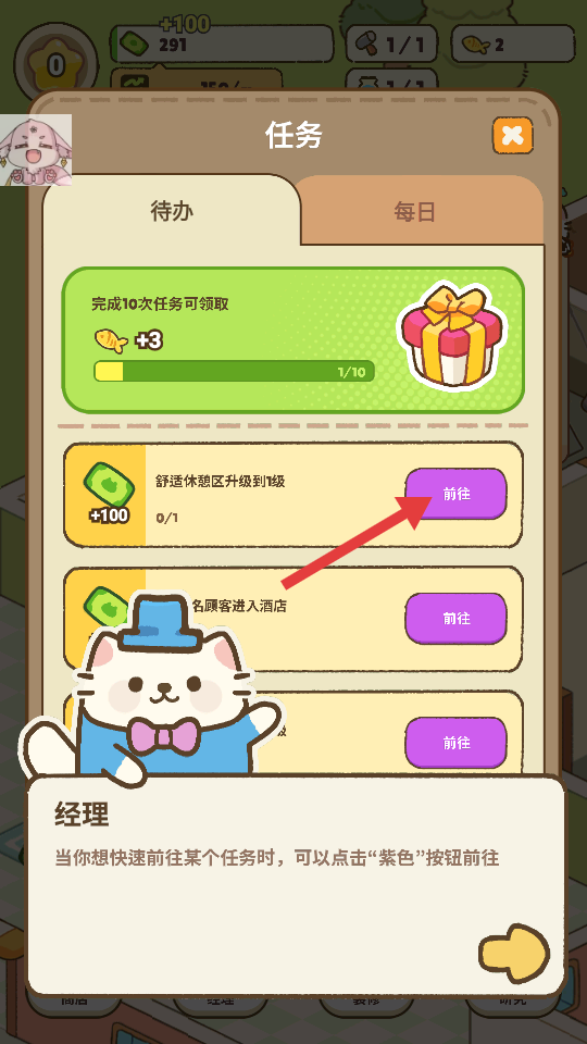 4、资源管理通过任务推进,小鱼干用于设施升级,满意度奖励解锁新内容,循序渐进扩大规模,体验成长成就感。