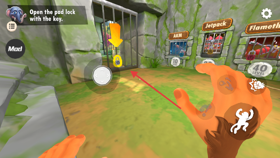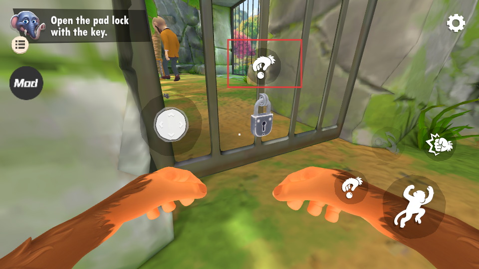 3、在铁门前,使用带有问号的互动按钮,尝试开启挂锁,完成开门任务以进入新区域。