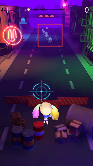 1、进入关卡后,瞄准前方出现的僵尸群体,通过瞄准器锁定目标,准备发起攻击推进游戏。