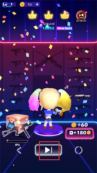 3、关卡结束后可通过点击屏幕获取额外金币,用于解锁武器皮肤与角色装扮,丰富收集与个性化养成维度。