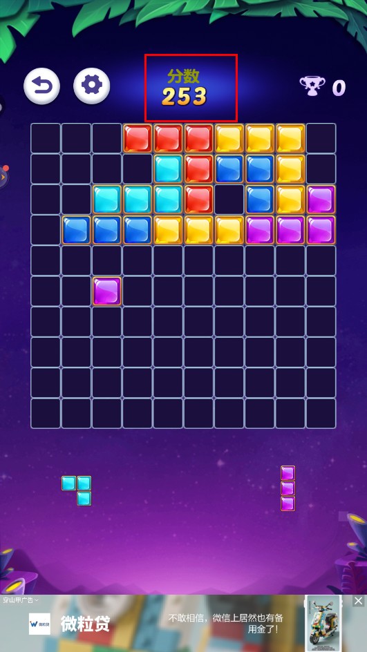 4、持续合理放置方块,凑齐同色或填满行消除,积累分数,推进关卡。