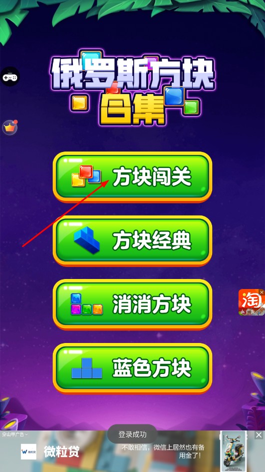 1、点击【方块闯关】,进入《俄罗斯方块合集》的闯关模式。