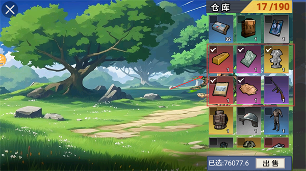 4、进入仓库界面后,选择多余的【金条-骑士团身份牌-青铜坤-绝密情报】等物资,点击出售获取货币。