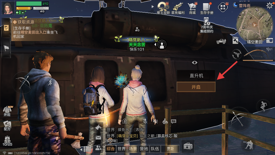 2、靠近直升机,点击【开启】,进入飞行点选择界面。