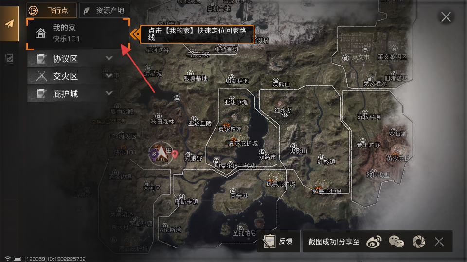 3、在飞行点界面,选择【我的家】分类下的目标家园。