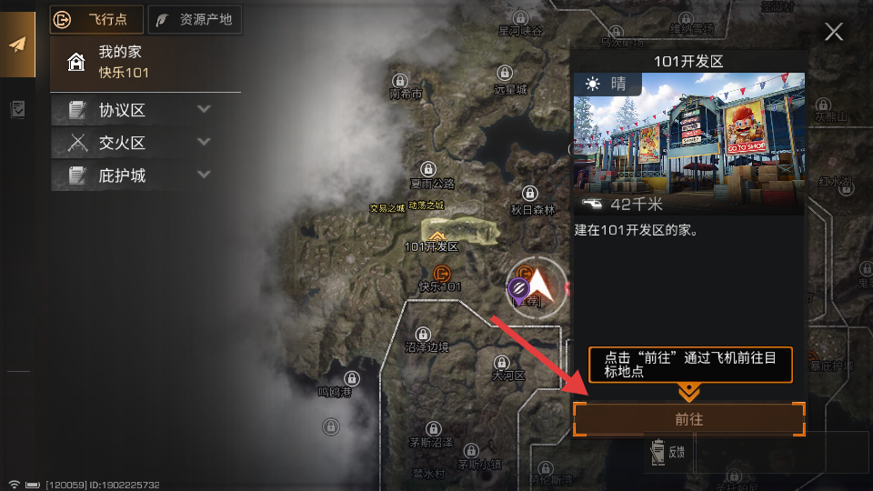 4、点击【前往】,通过直升机飞往家园,完成回家操作。