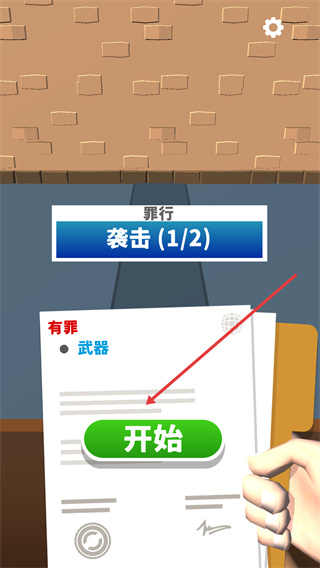 1、在“袭击(1/2)”罪行的案件中,点击【开始】按钮,进入法庭解谜环节,开启案件审理。
