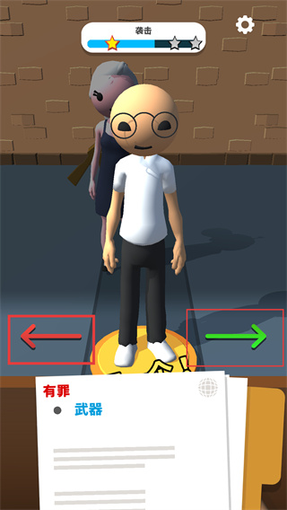 2、通过左右箭头操作,判定嫌疑人是否有罪,左面是有罪,右面无罪。