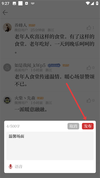 4、输入完成后,点击【发布】,完成评论发布。
