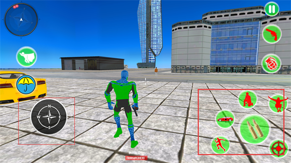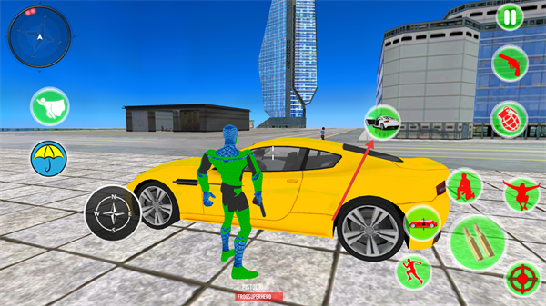 2、利用指南针功能确定方向,选择不同的动作和道具(如汽车、武器等),应对城市中的犯罪事件和敌人。
