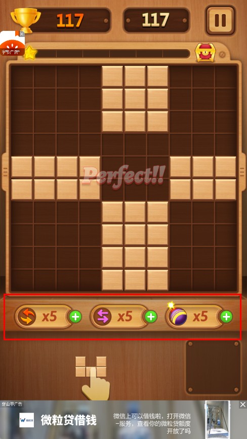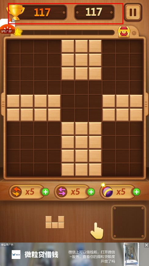 2、组合技巧:掌握5种基础形状方块的33种变形方式,学会预留8格以上的空位周转空间是连续消除20次以上的关键技巧不可缺少。
