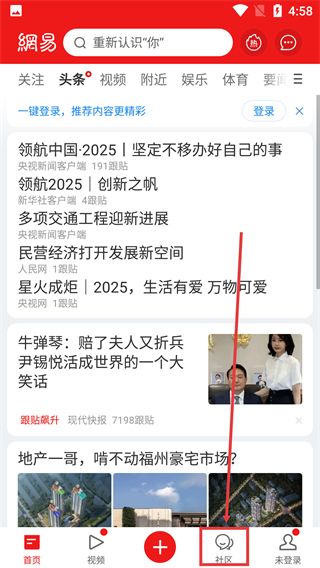 1、在首页点击底部【社区】选项,可进入社区页面,查看社区精选内容、热门动态等互动类内容。