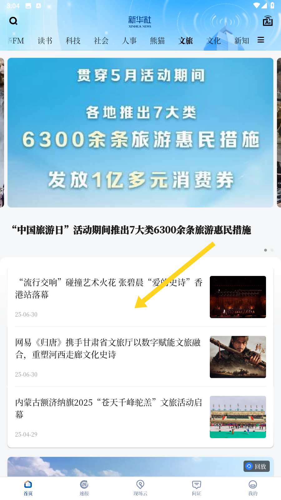 3、进入文旅频道,选择感兴趣的新闻并点击,即可进入新闻详情页阅读内容呢。