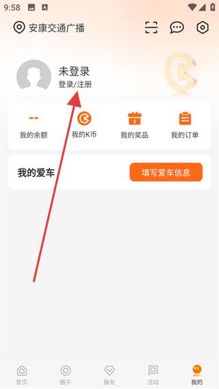2、可看到【未登录-登录/注册】入口,以及【我的余额】等功能选项。