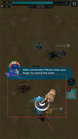 1、玩家进入按照提示用手指操控【摇杆】移动坦克,这是调整坦克位置、躲避敌方或靠近目标的核心操作,需熟练掌握。