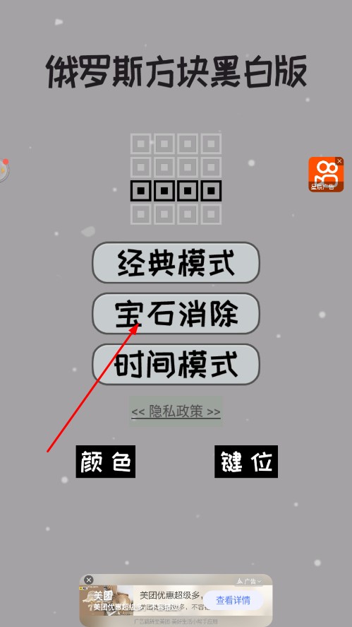 1、进入《经典俄罗斯方块黑白》选择【宝石消除】模式。