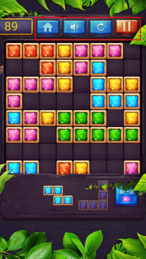 3、利用上方功能按钮(如返回、音效、重玩、暂停),调整游戏状态,助力消除。