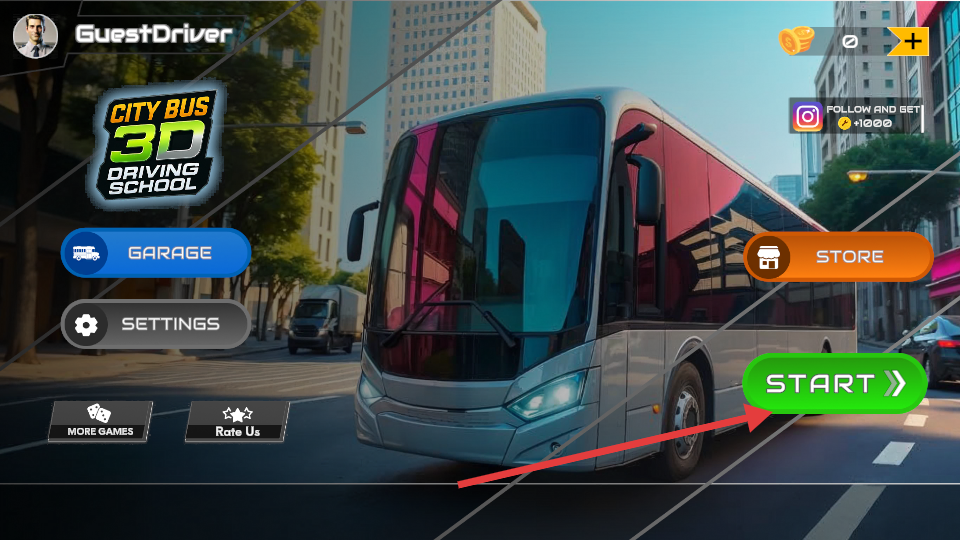 1、点击“START”按钮进入游戏,开启城市巴士驾驶之旅。