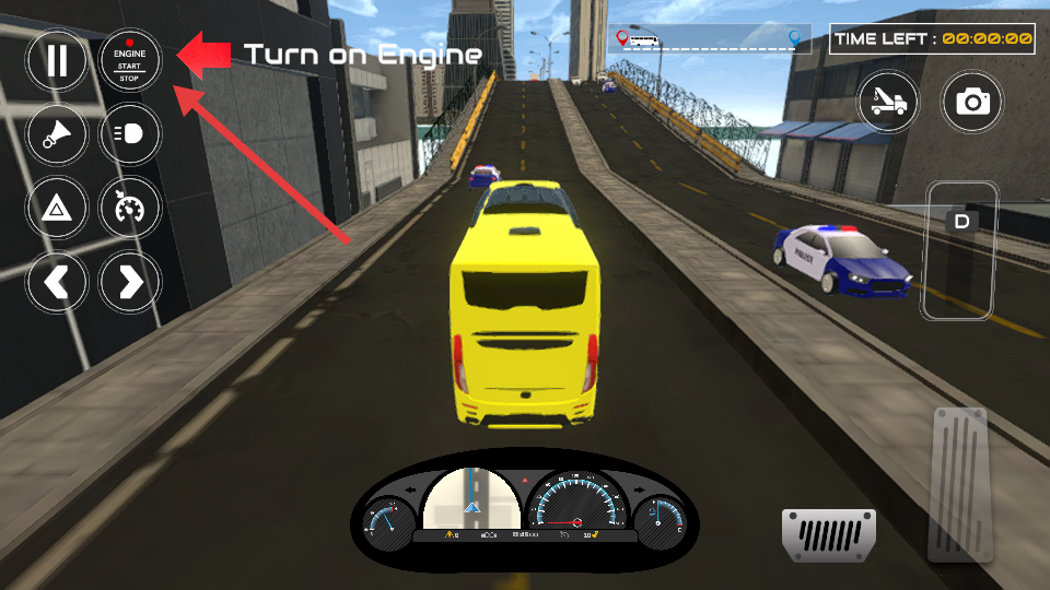 3、点击“ENGINESTARTSTOP”按钮启动巴士引擎,准备开始驾驶。