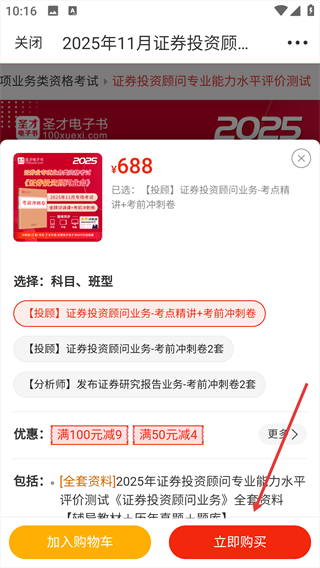 4、在购买选择页,选择对应【科目-班型】,确认后点击【立即购买】完成操作。