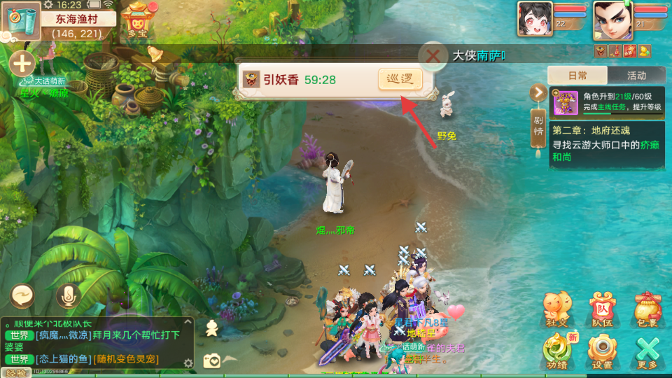 3、使用引妖香,触发巡逻状态,吸引野外松鼠。