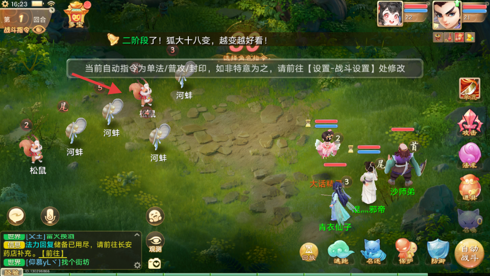 4、吸引到松鼠后,进入战斗,击败松鼠完成捕捉。