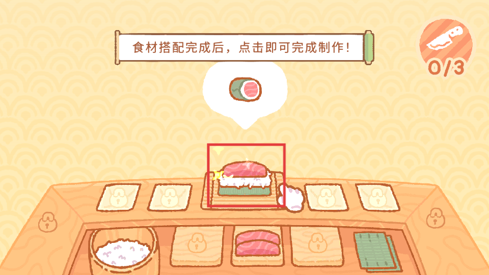 2、经营系统包含材料收集和菜品制作,寿司种类丰富变化多样,创意发挥空间充足,满足感强烈增强参与动力持久。