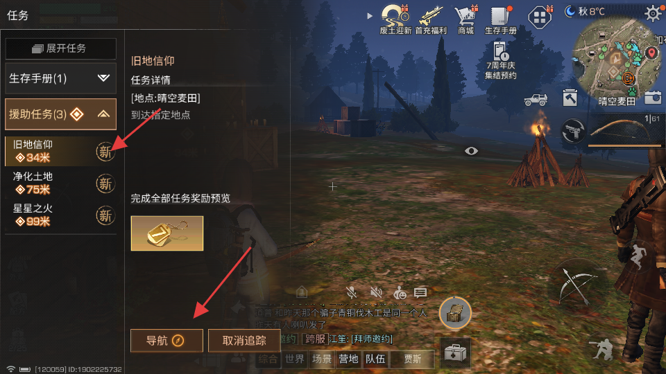 1、在任务界面,选择【旧地信仰】任务,点击【导航】。