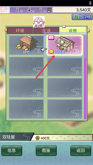 4、建筑可以自由组合搭配,把茶屋建在河边就成了水茶屋,寺庙后山开辟墓地会有特殊加成,发挥创意很重要。