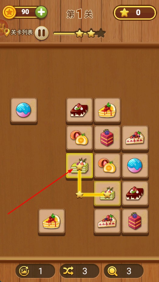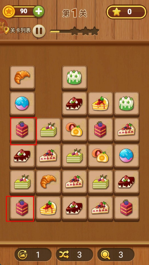 2、寻找相同图案的方块,点击选取,再点击另一相同方块,实现连线消除。