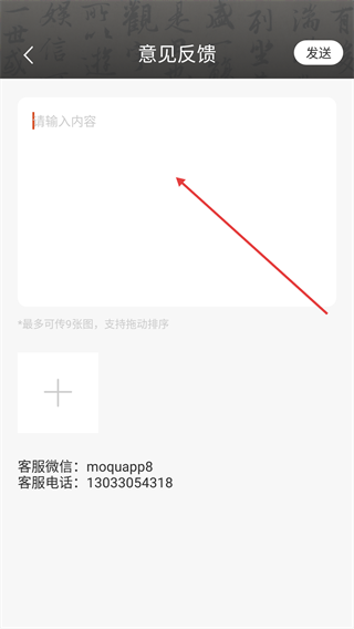3、在输入框中填写反馈内容。