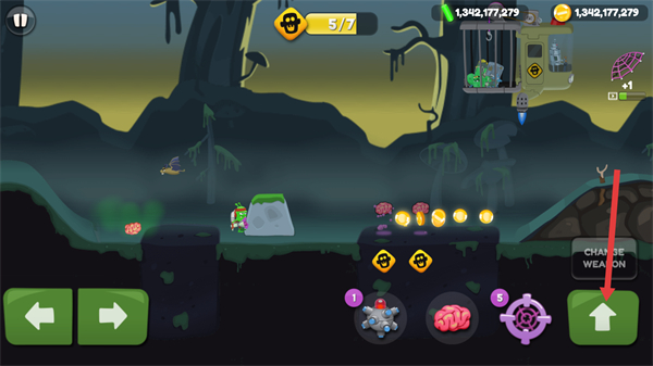 在捕捉僵尸的环节里玩家操控的外星人小哇头顶血条。