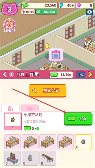 3、在工作室中,可购买各类设施小绿苗盆栽提升工作室的收益和运营效率。