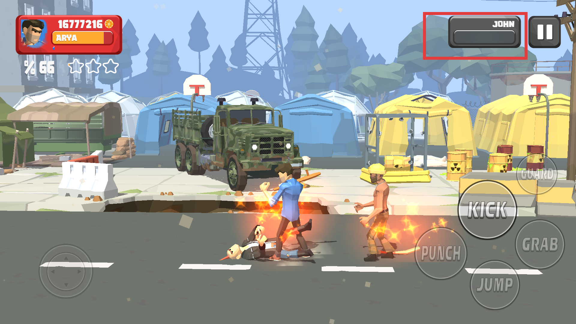 2、关注敌人(如John)的生命值条,合理运用攻击技能,逐步削减其生命值。