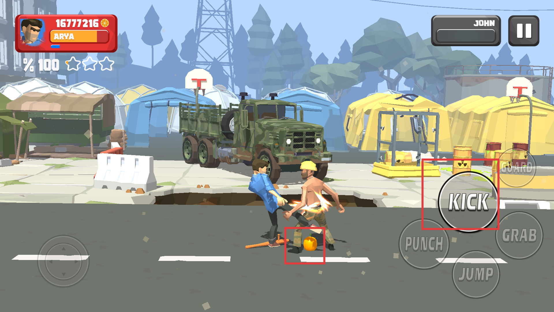 3、战斗中可使用“Kick”等踢击技能,同时收集场景中的道具,提升自身的战斗能力和资源积累。
