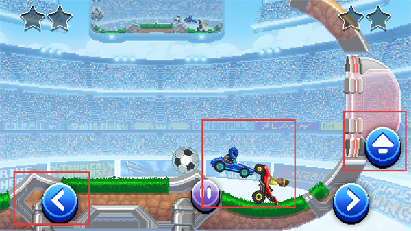 2、核心融合赛车与足球玩法,操控赛车撞击足球推进,瞄准球门完成射门得分,两种元素碰撞产生独特竞技体验。