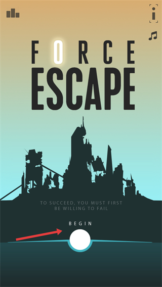 1、点击【BEGIN】按钮,进入逃生力场的游戏界面,开始游戏。