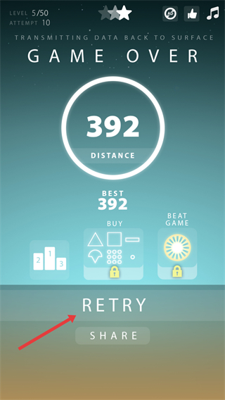 4、游戏结束后,点击【RETRY】按钮即可重新游玩。