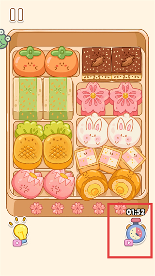 2、继续匹配界面内的相同点心,关注剩余【01:52】倒计时,加快操作以完成当前关卡。