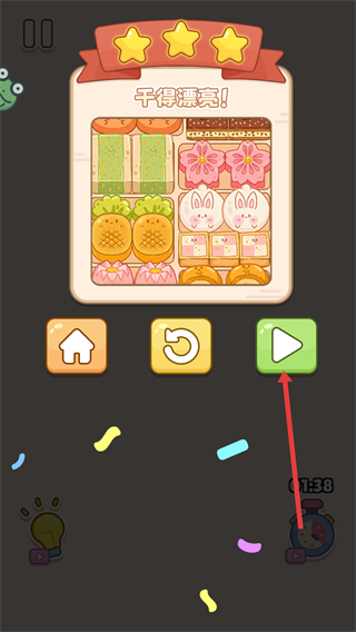 3、完成关卡后获得三星评价,点击绿色的前进按钮,进入下一个游戏关卡。