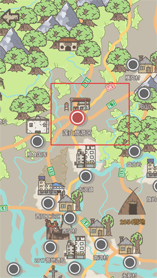 2、在地图界面,选择“莲山旅游区”作为初始探索区域,该区域资源丰富,适合新手发展。