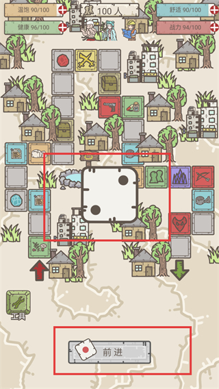 3、探索时点击【前进】,通过掷骰子决定移动步数。