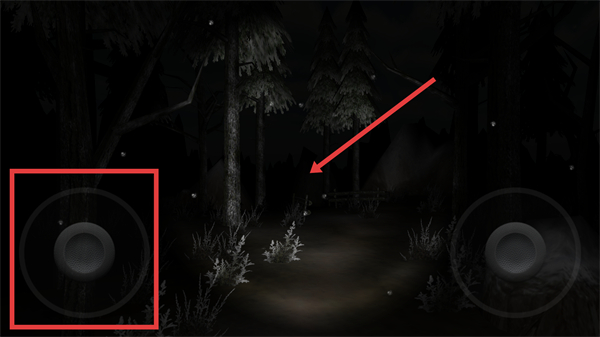 2、操控红框内的虚拟摇杆移动角色,探索森林场景,注意周围环境线索,推进关卡进程。