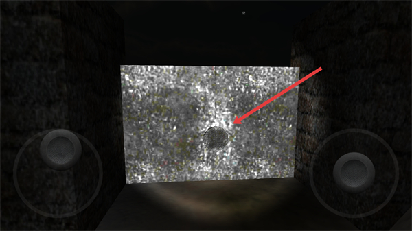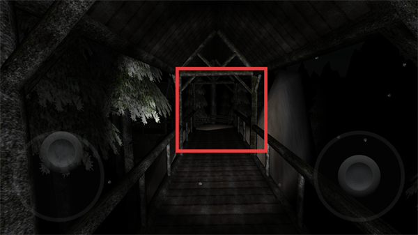 4、靠近红框内的墙面孔洞,交互该区域以触发剧情、获取道具,推进恐怖森林的探索流程。