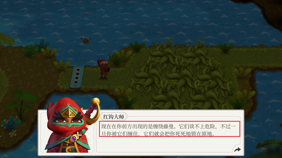 3、遇【红钩大师】提示时,知晓前方【缠绕藤蔓】特性,避免被缠住导致无法移动影响任务。