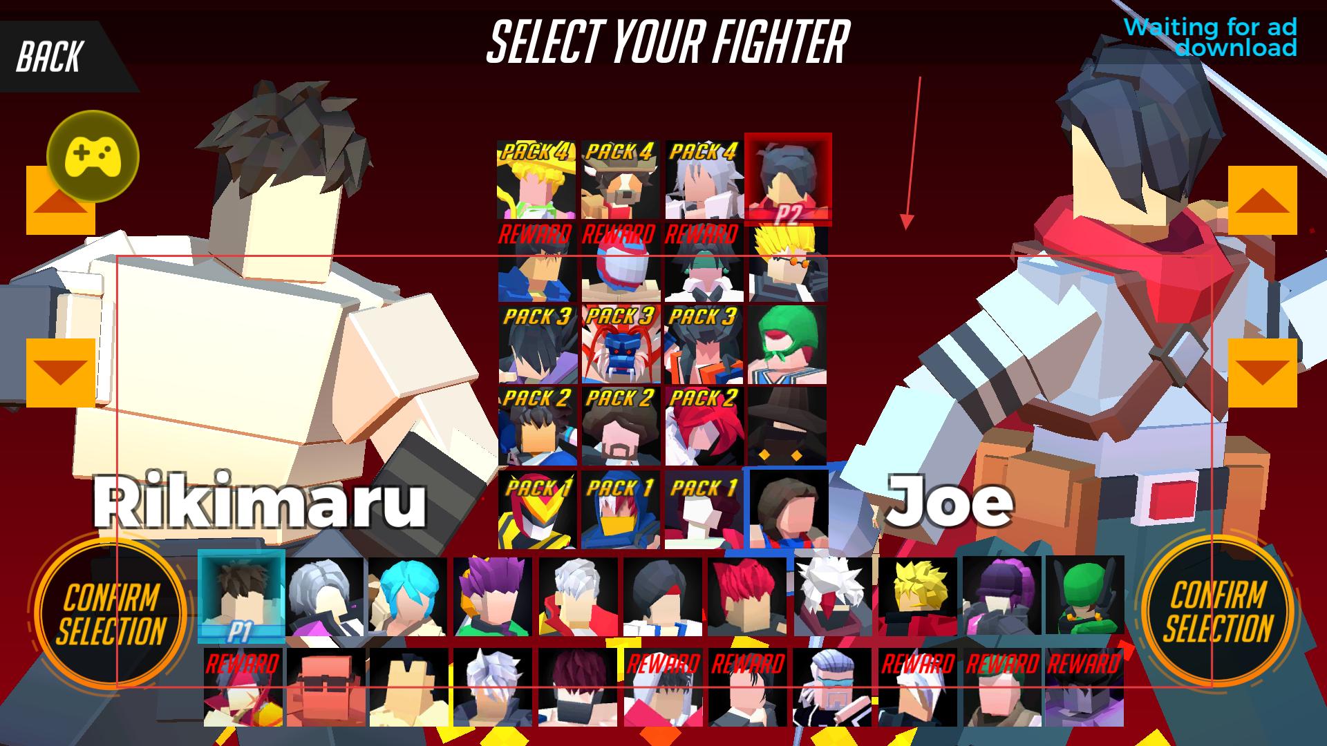 2、角色选择时,选定【Rikimaru】与【Joe】后,分别点击双方的【CONFIRM-SELECTION】确认阵容,不同角色包对应不同技能体系。